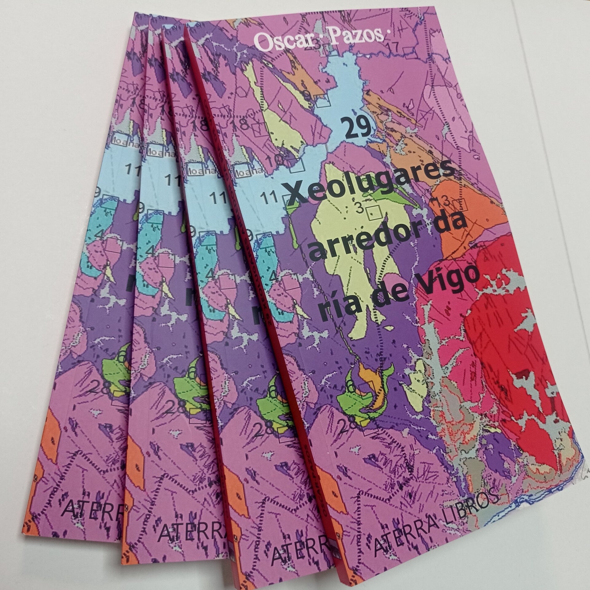 Esta guía recolle 29 xeolugares arredor da ría de Vigo dignos de seren visitados e coñecidos . Cada un deses 29 xeolugares amosa da mellor maneira un aspecto da historia xeolóxica do país, dende os restos do desaparecido océano Reico até o actual Antropoceno, desvelando algunhas claves habitualmente desapercebidas sobre las causas do actual desenvolvemento e territorialización. Cun formato pensado para levar o campo (128*240 mm), a guía ten 210 páxinas e 330 figuras e fotografías. Editado en 2024.